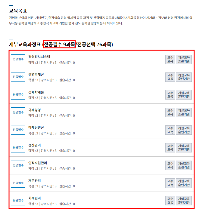 정해진 전공필수 과목들을 이수하셔야 합니다